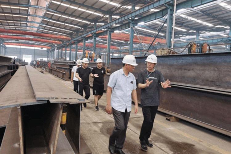 隨后,公司領(lǐng)導(dǎo)陪同考察組成員去往鋼結(jié)構(gòu)加工車間、網(wǎng)架加工車間、管桁架加工車間進(jìn)行實(shí)地考察,考察期間由公司領(lǐng)導(dǎo)詳細(xì)介紹了公司產(chǎn)品的型號(hào)、性能及特點(diǎn)并與考察組成員進(jìn)行了討論交流。公司始終視質(zhì)量為生命,始終堅(jiān)持“質(zhì)量保障、信譽(yù)至上”的原則,嚴(yán)格貫徹ISO9001:2000質(zhì)量管理體系標(biāo)準(zhǔn),并取得了認(rèn)證,創(chuàng)造了許多高品質(zhì)工程,近年來,先后完成多項(xiàng)國家重要工程項(xiàng)目,其產(chǎn)品的質(zhì)量受到廣大用戶的一致好評(píng)。山東高速集團(tuán)領(lǐng)導(dǎo)在實(shí)地考察后對(duì)于我公司的實(shí)力也給予高度肯定。
