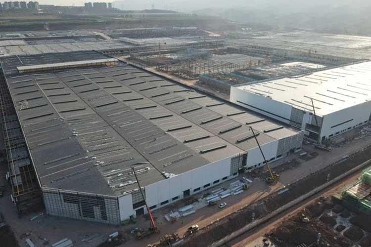 山東遠(yuǎn)東偉業(yè)集團(tuán)重慶龍興SE項(xiàng)目部所負(fù)責(zé)的總裝一車間屋蓋總面積8.54萬平方米,橫向?qū)挾葹?68米,縱向長(zhǎng)度為512米。
